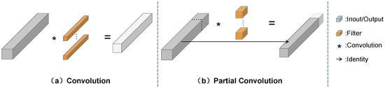 When the partial convolution ratio r (/c) is 1/4, the FLOPs of the partial convolution is only 1/16 of the regular convolution, while the memory accesses are only 1/4 of the regular convolution. This optimization strategy not only improves the computational efficiency but also effectively reduces the read and write operations of the memory, which further improves the efficiency of the convolution algorithm.