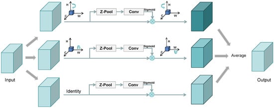 For the third branch, the channels of the input tensor X are directly reduced to 2 via Z-pool to yield the tensor . Subsequently, a convolutional layer with a k × k kernel size processes this tensor to produce an output of shape . The attention weights are generated by applying a sigmoid activation function, which is then used to weight the input tensor X, resulting in the vector .