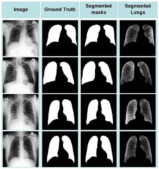 - Liu, W.; Luo, J.; Yang, Y.; Wang, W.; Deng, J.; Yu, L. Automatic lung segmentation in chest X-ray images using improved U-Net. Sci. Rep. 2022, 12, 8649. [Google Scholar] [CrossRef] [PubMed]