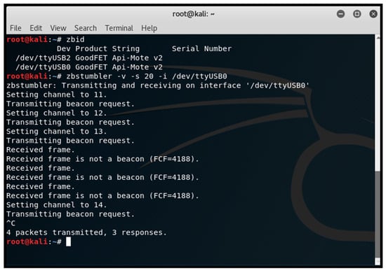 External information gathering involves interacting with the ZigBee network from outside to collect vital network information. The following steps were undertaken: