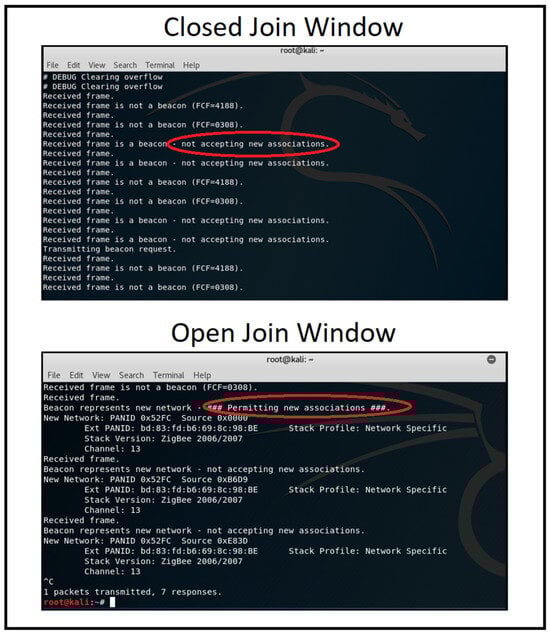 - Wang, J.; Li, Z.; Sun, M.; Lui, J.C.S. Zigbee’s Network Rejoin Procedure for IoT Systems: Vulnerabilities and Implications. In Proceedings of the 25th International Symposium on Research in Attacks, Intrusions and Defenses, Limassol, Cyprus, 26–28 October 2022. [Google Scholar] [CrossRef]