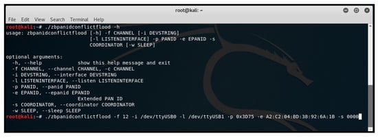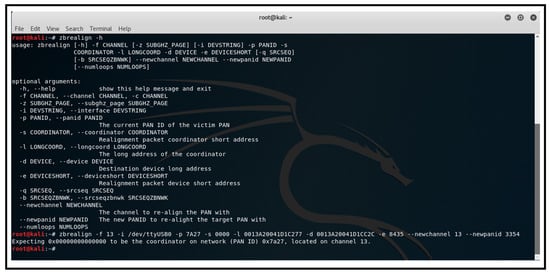 Figure 14 shows the execution of the zbrealign tool to create and send a spoofed coordinator realignment frame to the victim network.