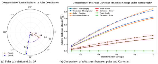 Comparison between (a) the calculation of and in polar coordinates, and (b) the structural robustness of polar versus Cartesian coordinate representations.