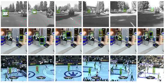 - Wu, Y.; Lim, J.; Yang, M.H. Online object tracking: A benchmark. In Proceedings of the IEEE Conference on Computer Vision and Pattern Recognition, Portland, OR, USA, 23–28 June 2013; pp. 2411–2418. [Google Scholar]