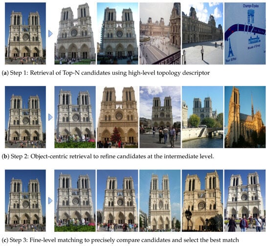 - Radenović, F.; Iscen, A.; Tolias, G.; Avrithis, Y.; Chum, O. Revisiting Oxford and Paris: Large-Scale Image Retrieval Benchmarking. In Proceedings of the IEEE Conference on Computer Vision and Pattern Recognition (CVPR), Salt Lake City, UT, USA, 18–23 June 2018. [Google Scholar]