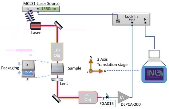 Experimental setup to perform the laser scanning through silicon inspection.