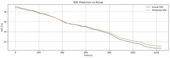 Kumar et al. [] addressed the importance of accurately and reliably estimating the SOC of lithium-ion batteries to improve their performance, lifespan, and safety. Using voltage, current, and temperature data—collected under controlled thermal conditions (0 °C and 10 °C)—they applied machine learning and deep learning techniques based on artificial neural networks. The models achieved mean absolute errors (MAE) ranging from 0.0030 to 0.0035 and mean squared errors (MSE) between 0.0043 and 0.0047.