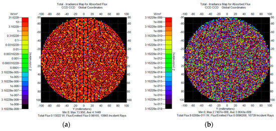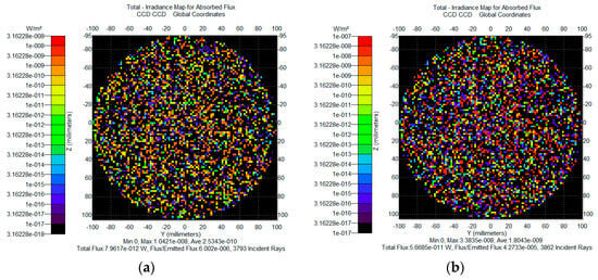Simulation results of different roughness levels: (a) 2 nm specular scattering stray light; (b) 5 nm specular scattering stray light.