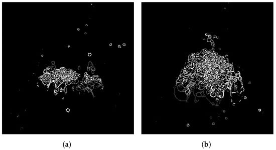 This subsection presents an approach that introduces handcrafted long-term spatial structural features to enhance the interpretability and defect-recognition ability of deep learning models. Specifically, two types of temporal fusion images are processed. First, the Marginal Edge History Image (MEHI) [28] is computed to describe the long-term dynamic content in the molten pool. Edges are detected frame by frame using a dynamic thresholding Canny algorithm, with high thresholds set to and low thresholds to high, then superimposed with exponentially decaying weights () to generate a static edge trajectory map, as shown in Figure 4. This strategy enables the model to incorporate persistent structural cues over time, thereby boosting interpretability and stability in weld defect detection.