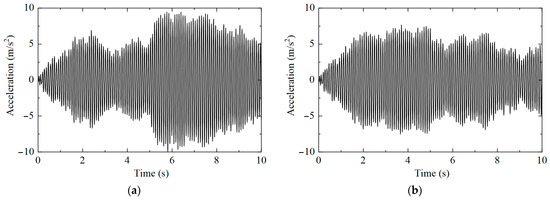 Measuring point No. 1’s acceleration time history: (a) working condition 1; (b) working condition 2.