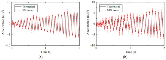 Acceleration response under different noise levels: (a) 5%; (b) 10%.