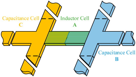 Here, is the potential vector of the capacitive cells, is the partial potential coefficient matrix, and is the charge vector of the capacitive cells. The partial potential coefficients can be expressed as follows: