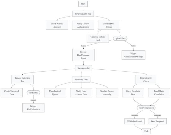 We deploy the proposed LEAD model within a simulated FISCO BCOS blockchain environment to emulate a real-world IIoT data pipeline. A single-group chain with four or more nodes is configured, and smart contracts are automatically deployed without manual intervention. To evaluate the system’s performance, we design and execute four representative test scenarios: (1) normal data upload, (2) tampered data verification, (3) simulated sensor fault detection, and (4) rejection of unauthorized device access. All testing procedures are fully scripted and automated to reflect realistic IIoT operations.