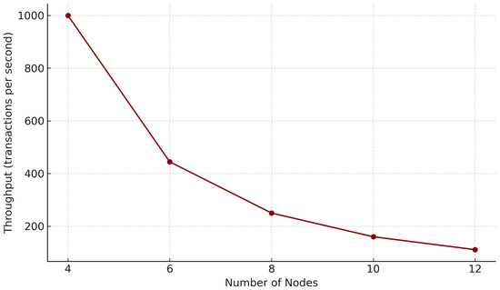 Figure 9 shows that, as the number of nodes in the FISCO-BCOS network decreases, the network throughput decreases rapidly. This phenomenon stems from the three-stage broadcasting feature of the consensus mechanism. Therefore, this mechanism is more suitable for consortium blockchains with a small number of nodes, and, in practical applications, large-scale nodes can be divided into multiple subgroups (such as five nodes per group). Since the consensus protocol is not the focus of this paper, we will not make any adjustments to it.