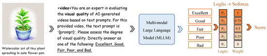 To evaluate the performance of CNN-based, VLM-based, and MLLM-based methods, we fine-tuned each approach on the LGVQ and FETV datasets. The implementation of the MLLM-based method is described below. Our implementation follows a light-tuning strategy that takes advantage of the strong visual priors of a pre-trained MLLM while keeping the computational footprint modest. The flowchart of visual quality assessment using a multimodal large model inference is shown in Figure 2.