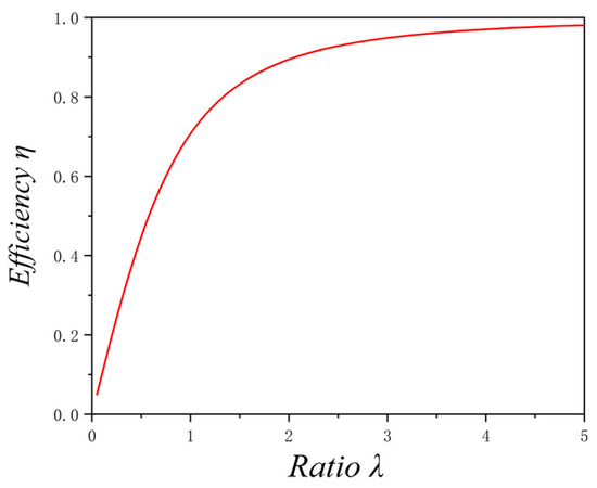 To verify the law, the simulated sensitivity variation trend (variation of the theoretical efficiency of the sensor) under different values of is shown in Figure 10. As illustrated in Figure 10, the sensor efficiency increases as increases. However, the efficiency rises rapidly at first, and when reaches 3, the increase begins to level off. Additionally, the theoretical efficiency remains consistently below 1.