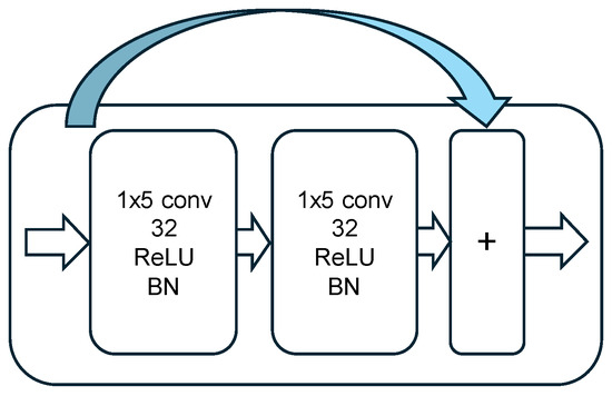 All convolutions in the residual units use filters, followed by batch normalization layers for regularization and faster convergence. The designs of the residual unit and the residual stack are illustrated in Figure 3 and Figure 4, respectively.