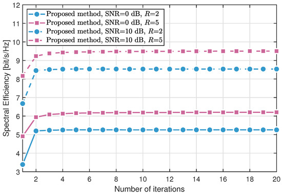 Spectral efficiency of the proposed method varying with L channel paths (SNR = 10 dB).