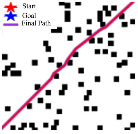- Hart, P.E.; Nilsson, N.J.; Raphael, B. A Formal Basis for the Heuristic Determination of Minimum Cost Paths. IEEE Trans. Syst. Sci. Cybern. 1968, 4, 100–107. [Google Scholar] [CrossRef]