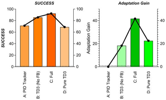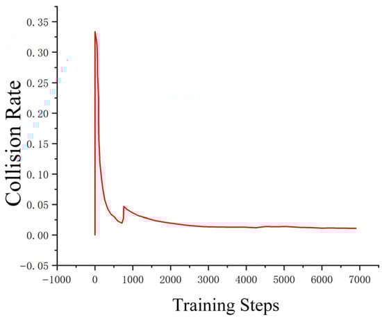 TD3 provides crucial adaptability for dynamic optimization, significantly improving the obstacle avoidance rate and path conservation (Table 8). Its trial-and-error learning and guided by a reward function tied to energy consumption and control stability (Equations (5), (7) and (11)), it allows the agent to converge to a safe and efficient policy. Integrating local risk perception from Swin-Transformer and guidance from T-ASTAR enriches TD3’s decision-making, enabling it to respond effectively to new situations rather than exploring blindly. While this may occasionally increase turn counts in sudden encounters, it leads to overall reductions in collision rates and traversed distance.