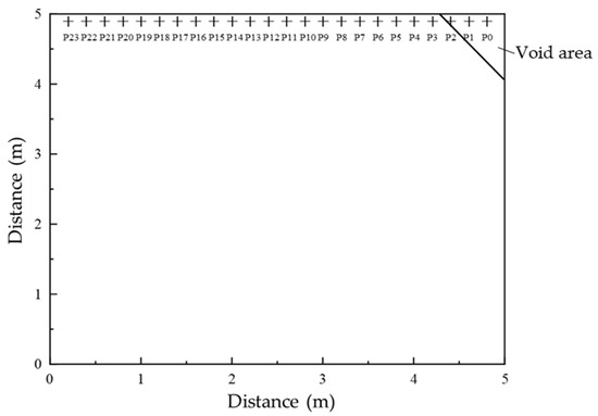 The measurement points were sequentially labeled P0 to P23 from right to left, corresponding to the column indices in the simulation output. The void region was located at the upper right corner of the slab. This labeling scheme facilitates efficient feature extraction and subsequent model development as shown in Figure 7.