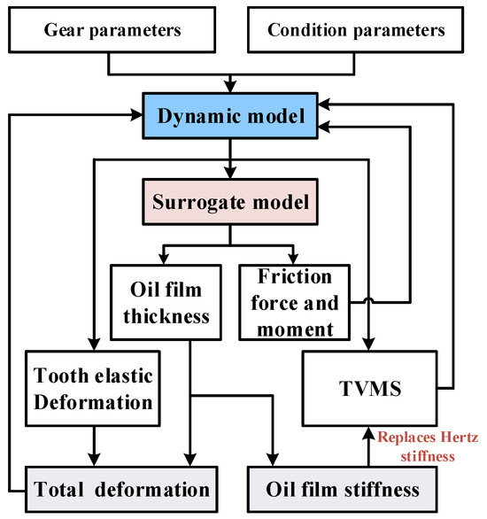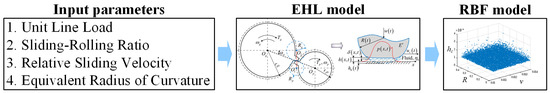 The direct coupling of the TEHL model with the dynamics model significantly reduces computational efficiency due to the slow iterative solution process of the TEHL model [17]. To address this limitation, the TEHL model is replaced by a surrogate model in this study. The computational flow of the TEHL agent model is illustrated in Figure 2.