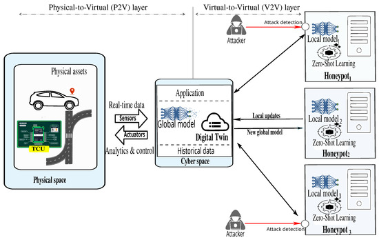 As illustrated in Figure 2, this section introduces TwinFedPot, a DT framework designed for real-time traffic management and cybersecurity. TwinFedPot integrates distributed honeypots with IFD learning scheme, enabling collaborative threat detection while preserving data privacy and minimizing communication overhead.