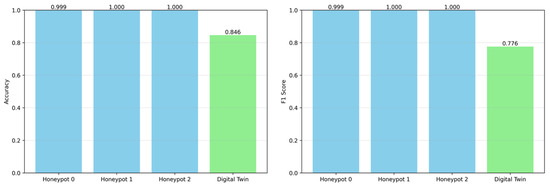Accuracy and F1-score comparison: DT vs. honeypots.