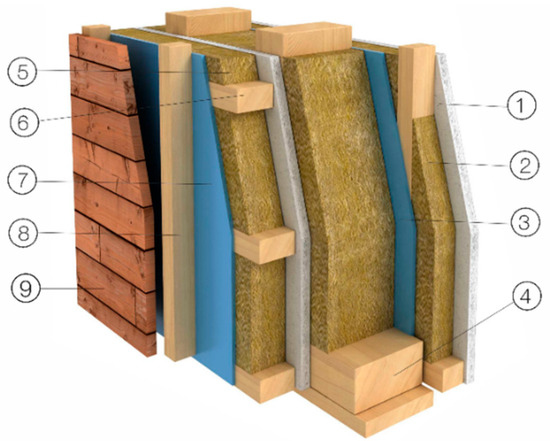 Scheme of typical timber wall with wooden cladding [8].