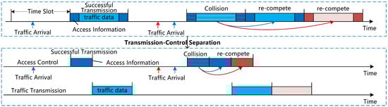 - Collision indicates that more than one piece of SUE transmits contention packets over the CAS slot. The collided pieces of SUE need to re-compete for another CAS slot in the next frame and store the traffic packets until no collision occurs over the chosen CAS slot.