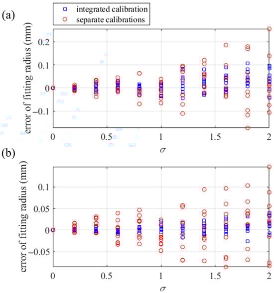 Deviations of the fitting radii. Radius deviations in (a) fitting the cylinder and (b) fitting the ball.