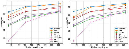 - Our designed network was validated on two large public datasets [27]; thus, the results are highly persuasive. The results show that the EEGResNet specifically surpasses state-of-the-art methods in short-time-window analysis (64 sp, 128 sp, for example (sp: )).