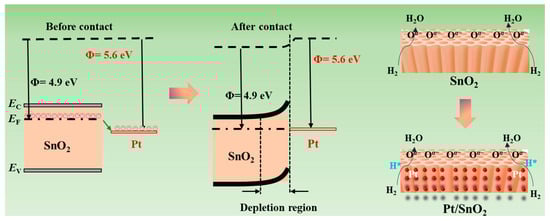 Possible sensing mechanism based on Pt/SnO2 for H2 sensing.