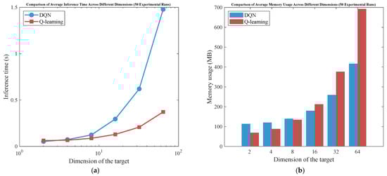 Compared with Q-learning, DQN exhibits significantly higher inference time and memory consumption in low-dimensional scenarios. Particularly for embedded systems or resource-constrained devices, the complexity of DQN introduces additional computational and storage overhead. Therefore, Q-learning represents a more suitable choice in such cases, especially when dealing with small state and action spaces.
