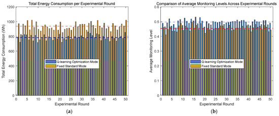 As shown in the figure above, multiple rounds of experimental data demonstrate that the Q-learning optimization mode still outperforms the fixed standard mode in terms of total energy consumption and monitoring accuracy. The specific numerical results are presented in Table 5 below.