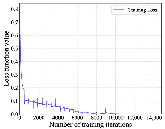 Training loss function value versus the number of training iterations.