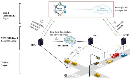 - This survey presents a holistic analysis of the synergistic integration of three key technologies: ML, blockchain, and multi-access edge computing (MEC). Unlike previous works that focused on these technologies in isolation, we scrutinize how their combined strengths can address critical gaps in V2X security such as real-time threat detection, decentralized trust management, and low-latency processing.