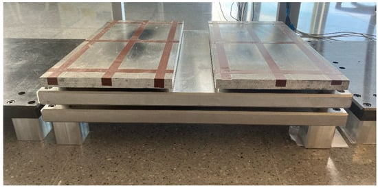 The device architecture and hardware consist of an aluminum plate at the base, measuring 600 mm × 500 mm × 35 mm, containing four uniaxial INELTA sensors, model IMK-DMS-2410-2m-K, with a DMS-sensitivity of 1 ± 10% mV/V and a cut-off frequency of 1000 Hz, as well as two aluminum plates at the top, measuring 240 mm × 500 mm × 20 mm, one for each foot, each containing the same four sensors as the plate below. The signals are collected by a National Instruments compact DAQ model 9188, using NI 9239 analog cards (Emerson Electric Co., St. Louis, MO, USA), and processed through a computer with an Intel Core i5-8250U processor (Intel Technologies, Santa Clara, CA, USA) with 8 GB of RAM memory. MATLAB R2024b software is used with the data acquisition toolbox installed.