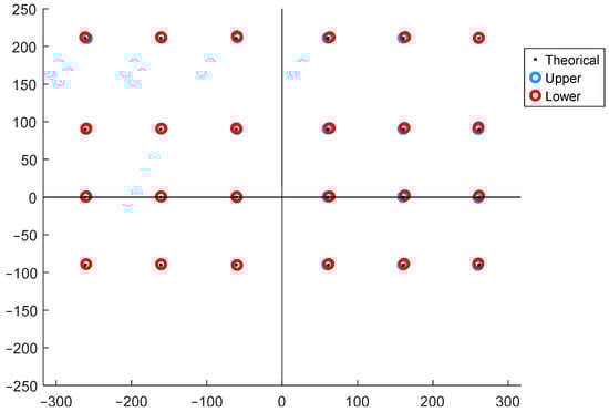 The outcomes of the experimental tests are presented in Figure 7, where the CoP location measured by the upper plate, the lower plate, and the actual points of application of the loads are shown in an overlay representation. The magnitude of the error committed is detailed in Table 1, where it is demonstrated that the mean error incurred by the left upper forceplate is 1.255 ± 0.42 mm, that incurred by the right upper forceplate is 0.934 ± 0.26 mm, and that incurred by the lower forceplate is 1.631 ± 0.69 mm, with a maximum value of 2.764 mm, which is marginally higher than the error incurred by the upper plates. This outcome proves the reliability and precision of the device developed.