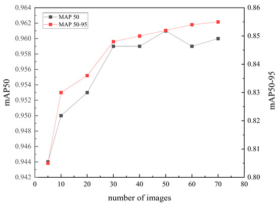 The mAP at the 50% IoU threshold (i.e., mAP50) represents a standard detection metric calculated as the mean average precision when using a single IoU threshold of 50%. In contrast, the mAP50-95 metric systematically varies the localization strictness from 50% to 95% in 5% increments (i.e., IoU = 0.50, 0.55, …, 0.95), thereby assessing model robustness under different detection precision requirements. The mAP50-95 can be expressed as