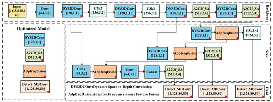 Second, the neck network is integrated with Adpfreqfusion (adaptive frequency domain-aware feature fusion), which enhances the model’s ability to extract features in complex backgrounds.