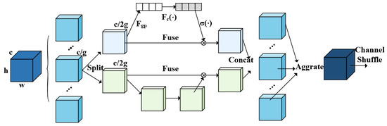 Employing two consecutive ShuffleAttention operations in place of a single C3k module promotes information interaction between different groups, helping to avoid information isolation. ShuffleAttention mainly consists of the following three steps: