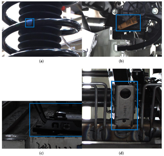 Examples of the dataset: (a) front suspension spring, (b) wiring harness port, (c) tie rod, (d) RZ.