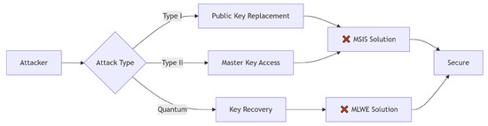 Nevertheless, in IBPRS schemes, the private keys of both the delegatee and delegator are generated by a Private Key Generator (PKG). This inherently introduces a key escrow problem [5], as the PKG possesses knowledge of all user private keys, enabling it to potentially eavesdrop on communications or to forge user signatures. To resolve both certificate management and key escrow issues, scholars have begun investigating certificateless proxy re-signature (CLPRS) schemes. Guo et al. [6] combined certificateless cryptography with proxy re-signature, proposing the first bidirectional CLPRS scheme. Although this approach eliminated certificate dependency and avoided the key escrow problem, a concrete security proof was not provided. The proxy re-signature schemes discussed previously are all based on traditional public key cryptography, with their security relying on the presumed intractability of problems such as large integer factorization and discrete logarithm problems. This reliance introduces inherent security vulnerabilities to the system. With the advent of quantum computing, the security of public-key cryptosystems founded on classically hard number-theoretic problems faces a significant challenge. As Shor [7] demonstrated, the advancement of quantum computing renders problems like discrete logarithm and integer factorization computationally tractable. Thus, developing post-quantum certificateless proxy re-signature schemes is the only comprehensive approach to resolving the certificate management bottleneck, key escrow problem, and imminent quantum computational threat faced by current proxy re-signature technologies.