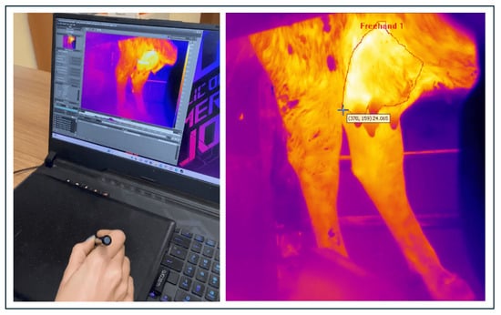 The first solution explored by the authors was to exploit another possibility offered by the automatic image analysis tool of the thermal camera. Namely, defining the ROI on the thermal image by hand (freehand ROI). This operation consists of manually selecting a region of interest in an image, usually by drawing an irregular shape with a mouse or stylus on a tablet and was used to locate the breast (Figure 9).