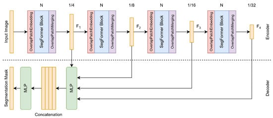 - Xie, E.; Wang, W.; Yu, Z.; Anandkumar, A.; Alvarez, J.M.; Luo, P. SegFormer: Simple and efficient design for semantic segmentation with transformers. Adv. Neural Inf. Process. Syst. 2021, 34, 12077–12090. [Google Scholar]
