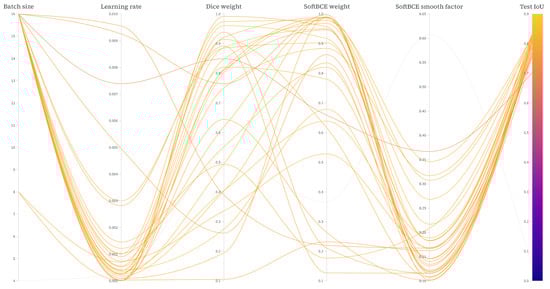 - Sudre, C.H.; Li, W.; Vercauteren, T.; Ourselin, S.; Jorge Cardoso, M. Generalised dice overlap as a deep learning loss function for highly unbalanced segmentations. In Proceedings of the Deep Learning in Medical Image Analysis and Multimodal Learning for Clinical Decision Support: Third International Workshop, DLMIA 2017, and 7th International Workshop, ML-CDS 2017, Held in Conjunction with MICCAI 2017, Québec, QC, Canada, 14 September 2017; Proceedings 3. Springer: Berlin/Heidelberg, Germany, 2017; pp. 240–248. [Google Scholar]
