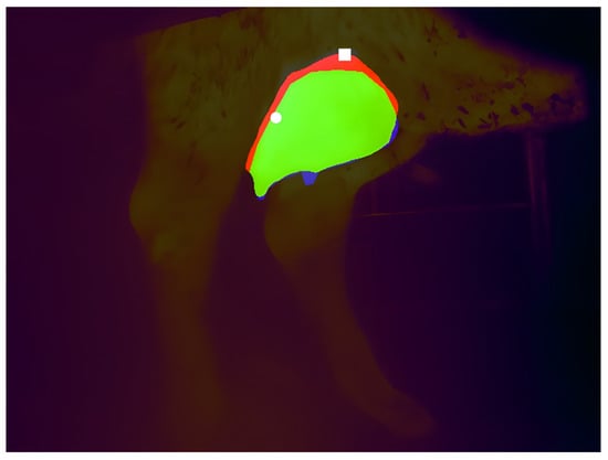 Therefore, if the recorded maximum temperature does not coincide with a point on the udder, the result would be an error in measuring the maximum udder temperature. This could lead to a false diagnosis [13]. To overcome this problem, a region of interest (ROI) should be selected within the thermal image that coincides with the udder area, and temperature extraction and analysis should be limited to this ROI.