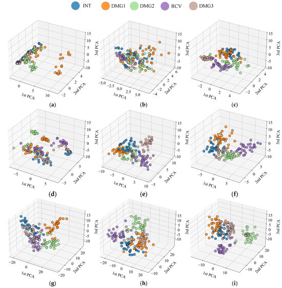 - Razavi, M.; Hadidi, A.; Ashrafzadeh, F. Feature extraction based on dynamic response measurements for structural damage identification: A comparative study. J. Struct. Integr. Maint. 2024, 9, 2364125. [Google Scholar] [CrossRef]