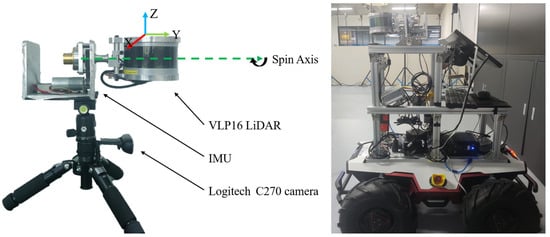 Zhen [15] performs 3D reconstruction using a rotating multibeam lidar and combines it with a stereo camera for dense 3D reconstruction. The system has a very high resolution but needs to be stationary while collecting data. Li Yan [16] designs a rotary-driven LiDAR mapping system for UAV and backpack platforms. The improved closed-loop detection algorithm is based on the Cartographer’s algorithm, whose effectiveness depends on specific features of the environment and performs poorly in environments lacking distinctive features. For this reason, this paper designs a rotation-driven LiDAR system for wheeled mobile and handheld platforms, which can acquire uniform full-field-of-view point cloud data in real time. And the LiDAR motion compensation is performed by uniform rotation modeling with IMU pre-integration.